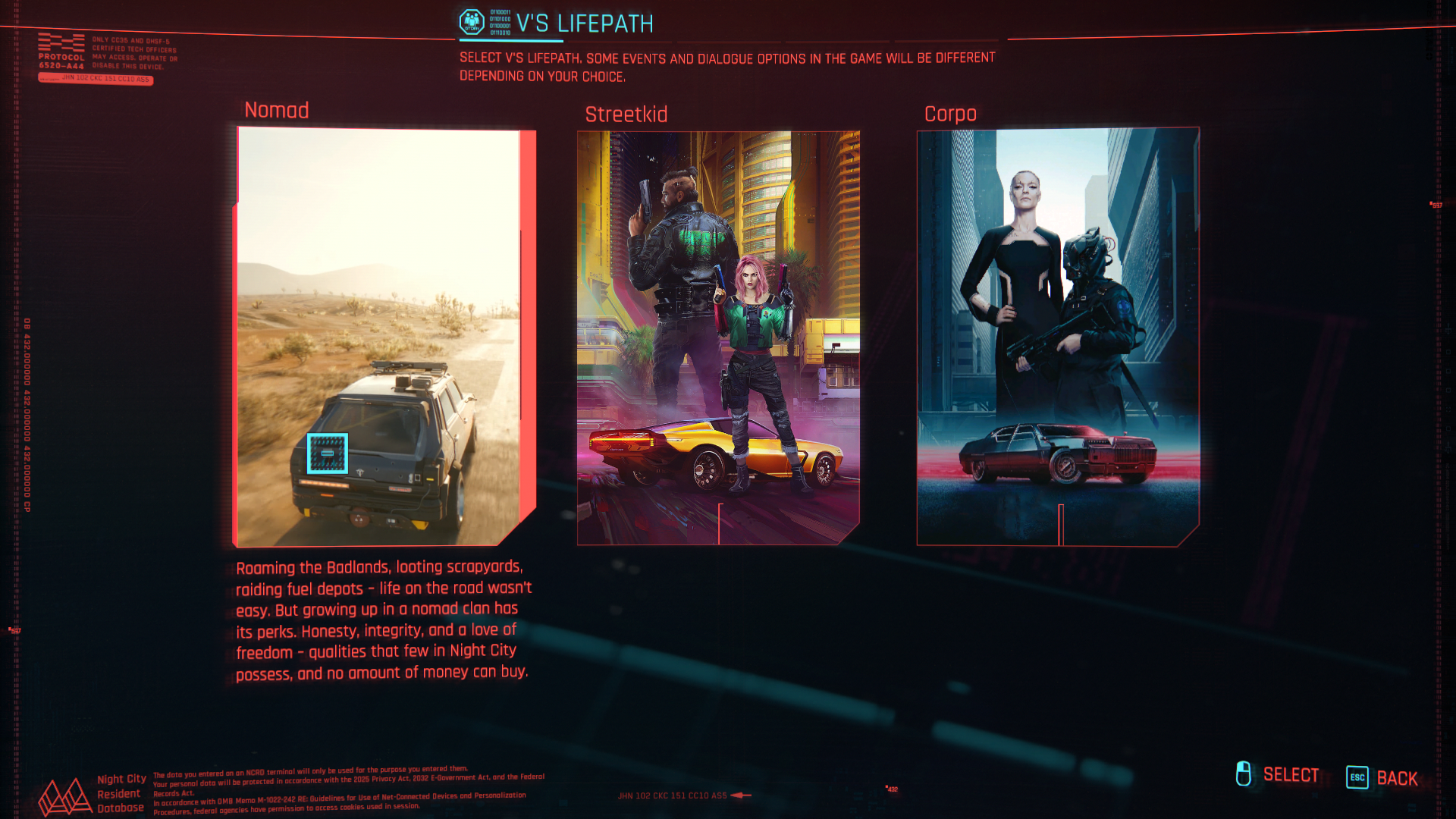 Select Character arc - V's Life Path